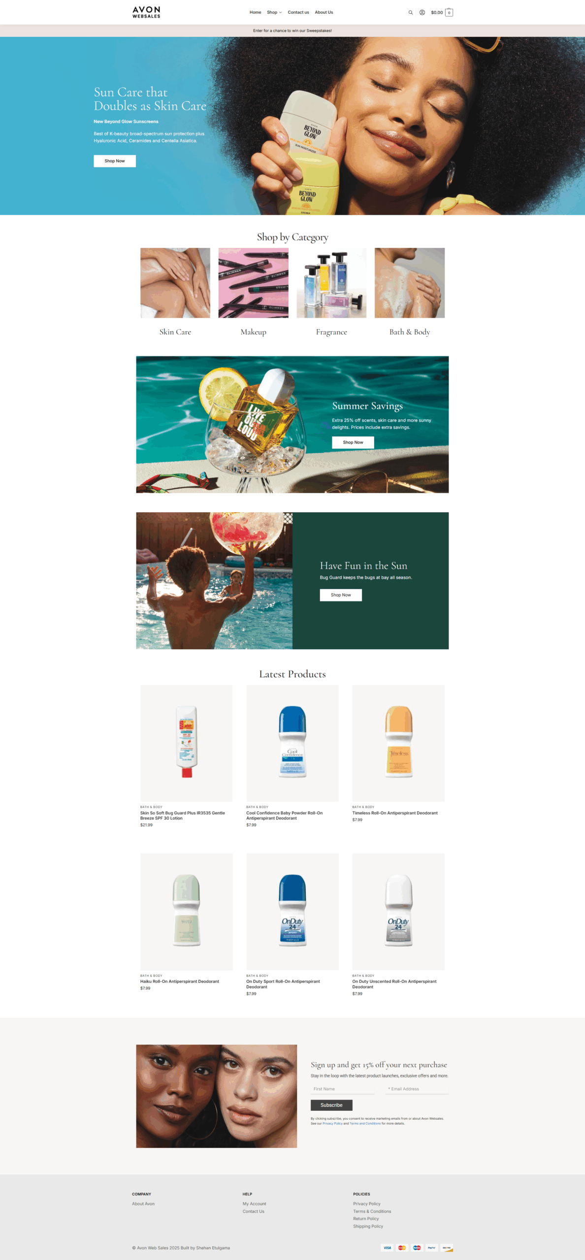 A fully functional e-commerce website that meets Mr. Mendieta’s design requirements. He wanted to make this site exactly like the Avon.com site.